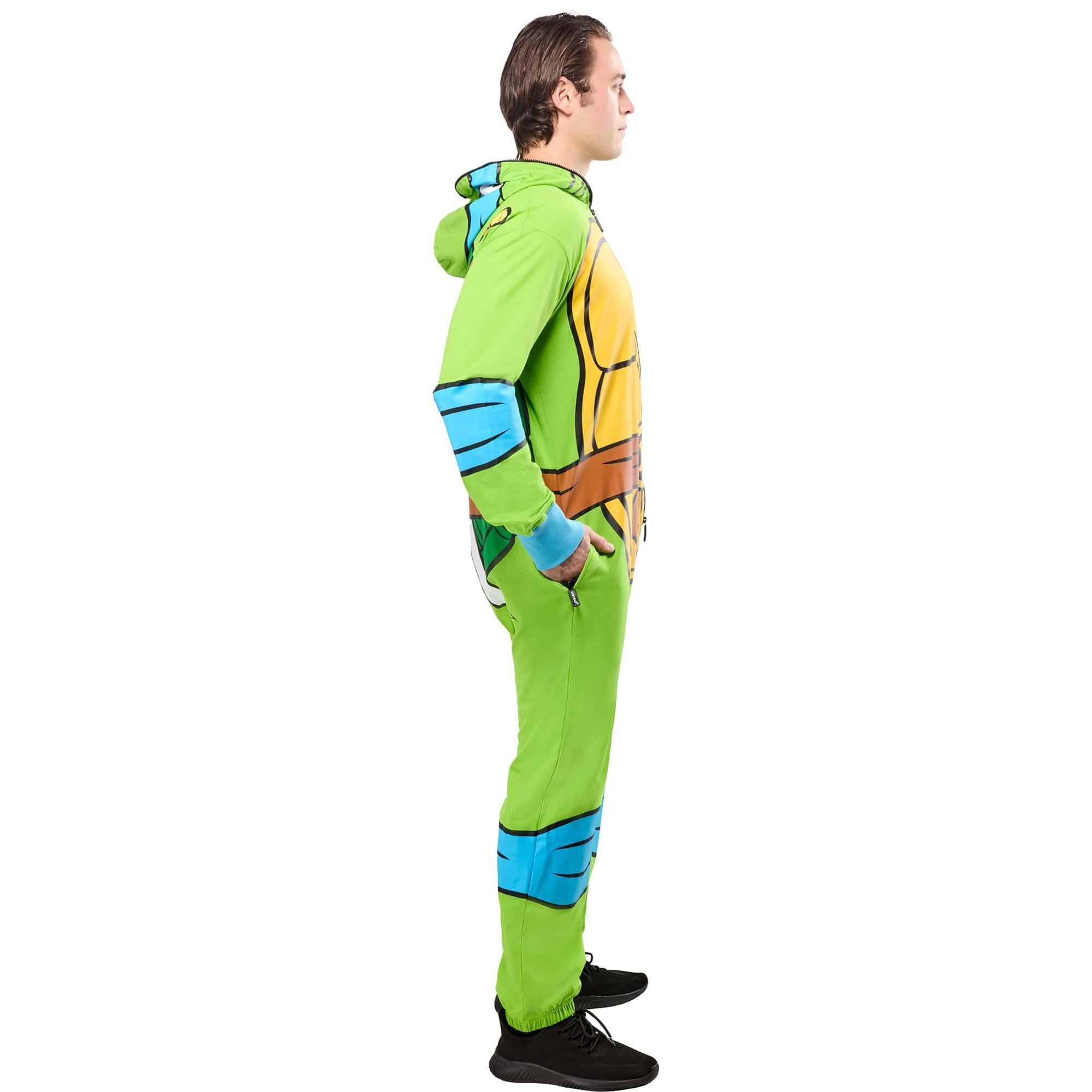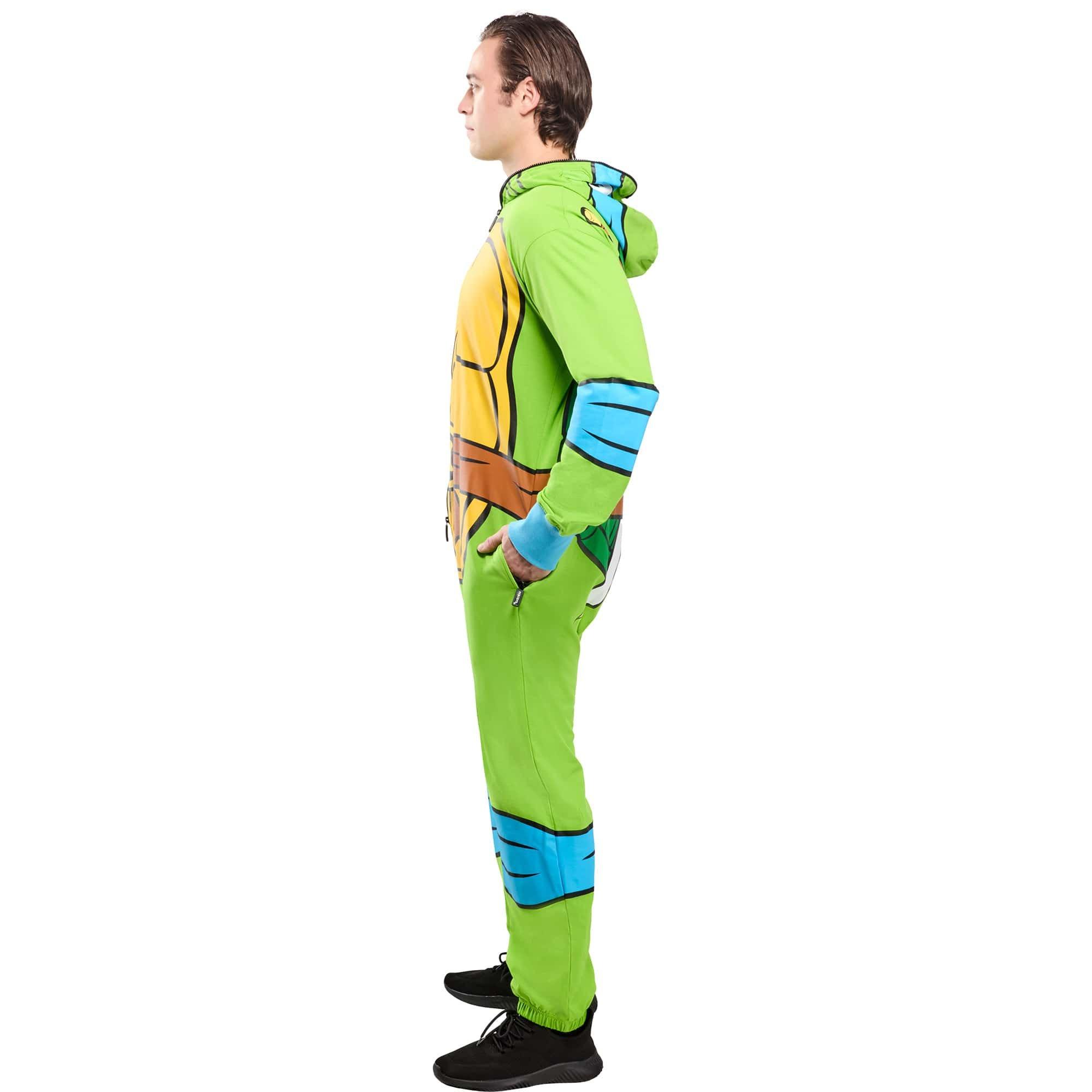 Step into the shell of the fearless leader of the officially licensed Teenage Mutant Ninja Turtles with the Men's Classic Leonardo Zipsters Costume. Featuring a shell printed jumpsuit with blue accents and Leonardo's face on the hood, this outfit is designed for comfort, adventure, and crime-fighting style. The convenient front zipper makes putting on and taking off the costume a breeze, while maintaining a secure and comfortable fit throughout any event. Shop now and get ready to fight crime, eat pizza, and embrace your ninja spirit in total comfort.