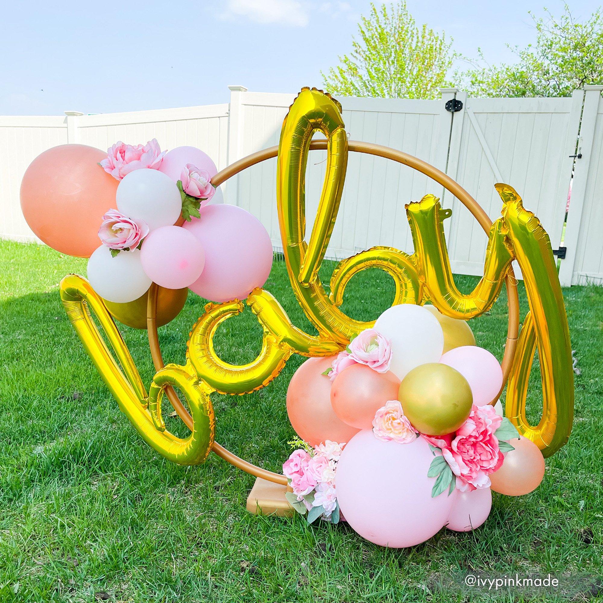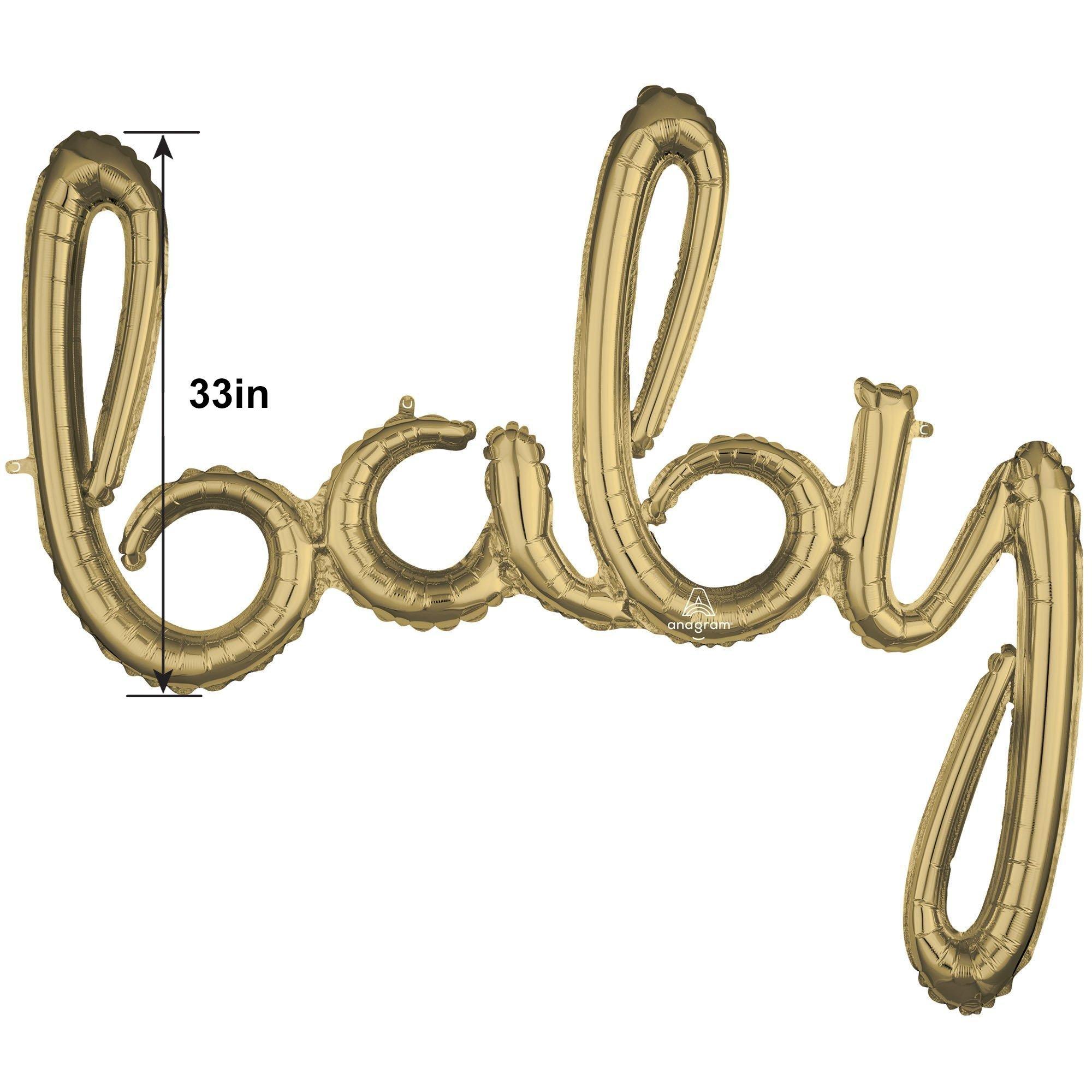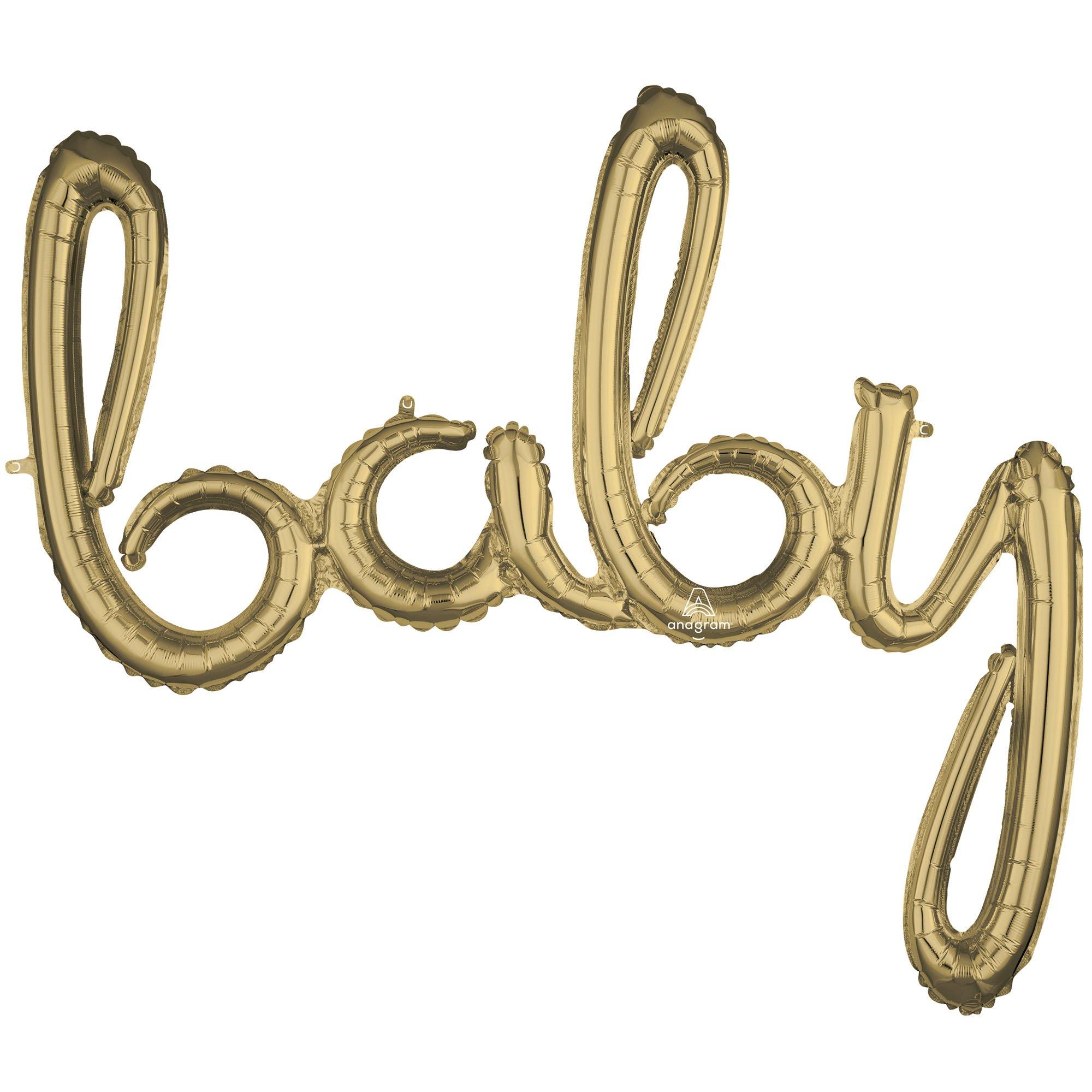 Air-Filled White Gold Baby Cursive Letter Balloon Banner