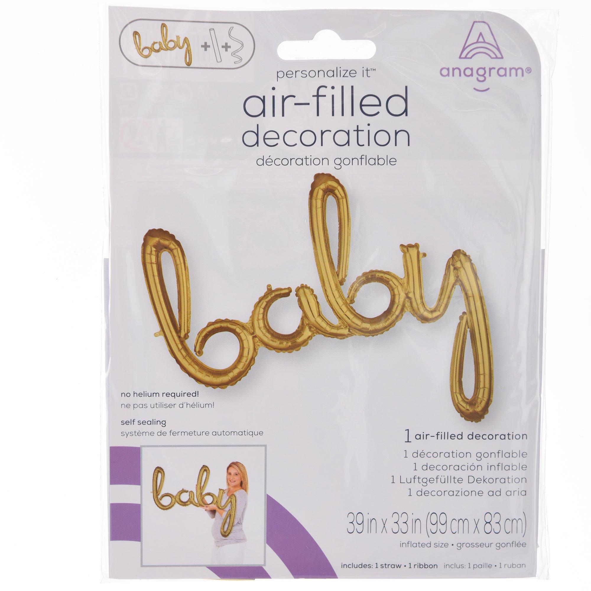 Air-Filled White Gold Baby Cursive Letter Balloon Banner product details: