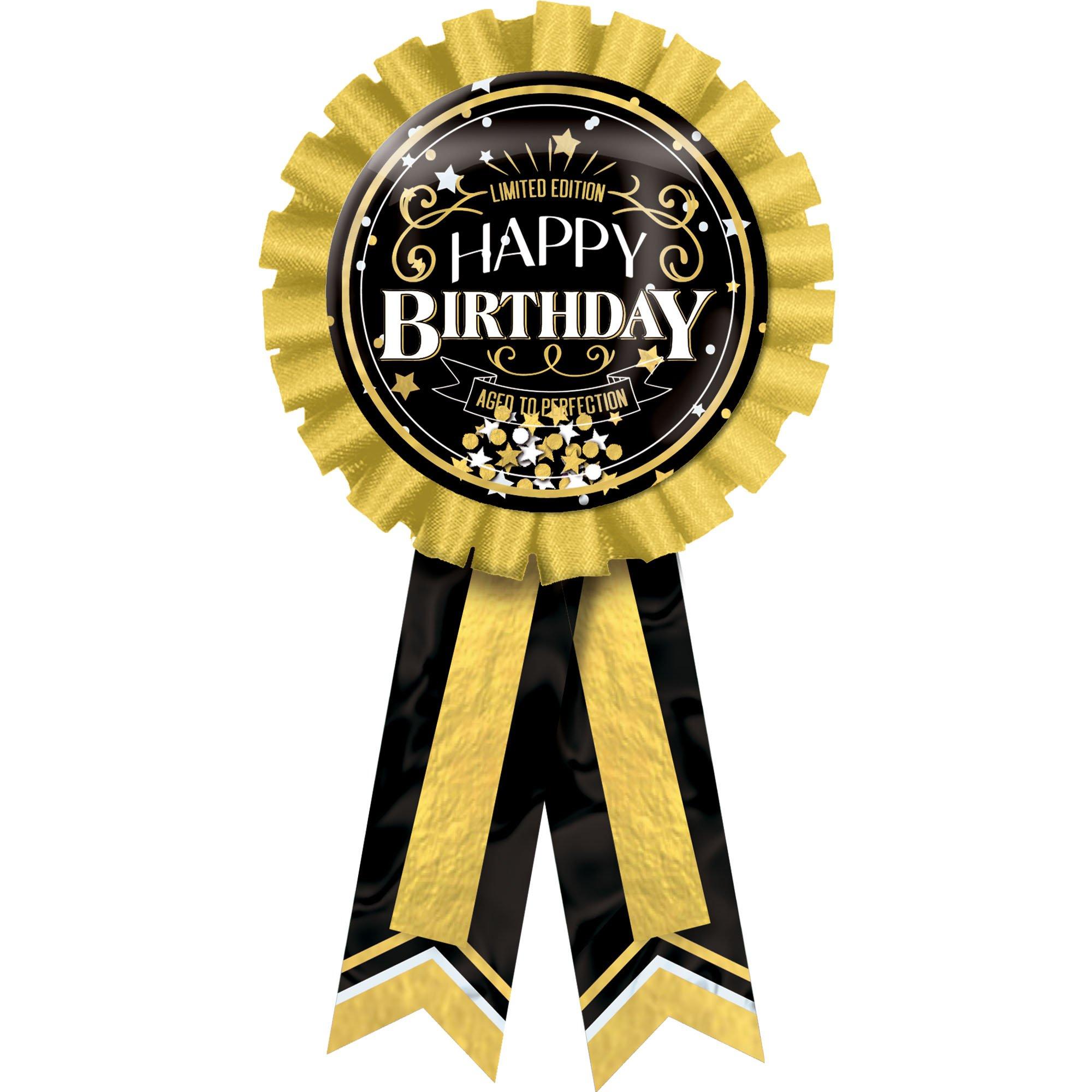 Black & Gold Better With Age Confetti Birthday Award Ribbon, 5.5in