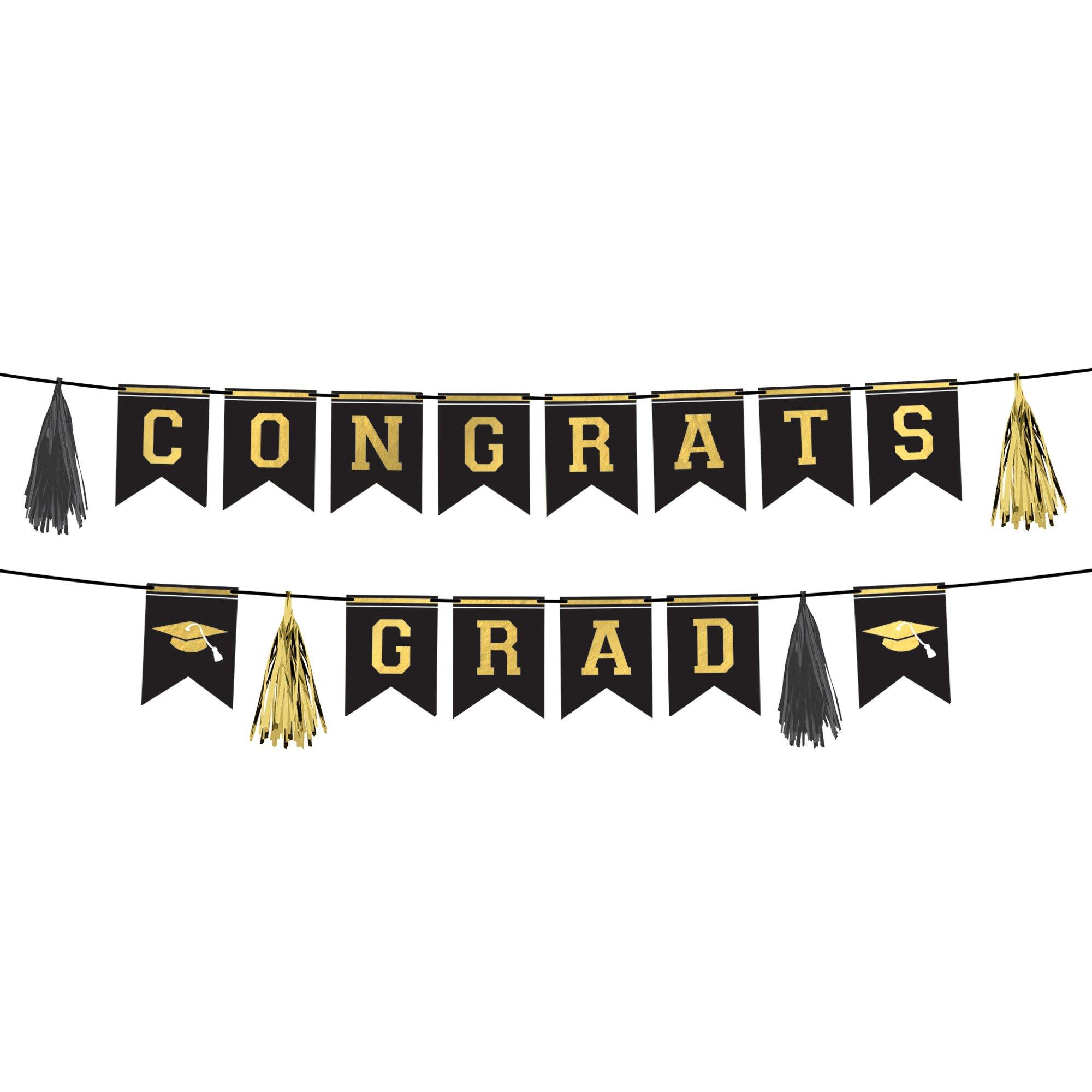 Black & Gold Congrats Graduate Cardstock Banner Set product details: