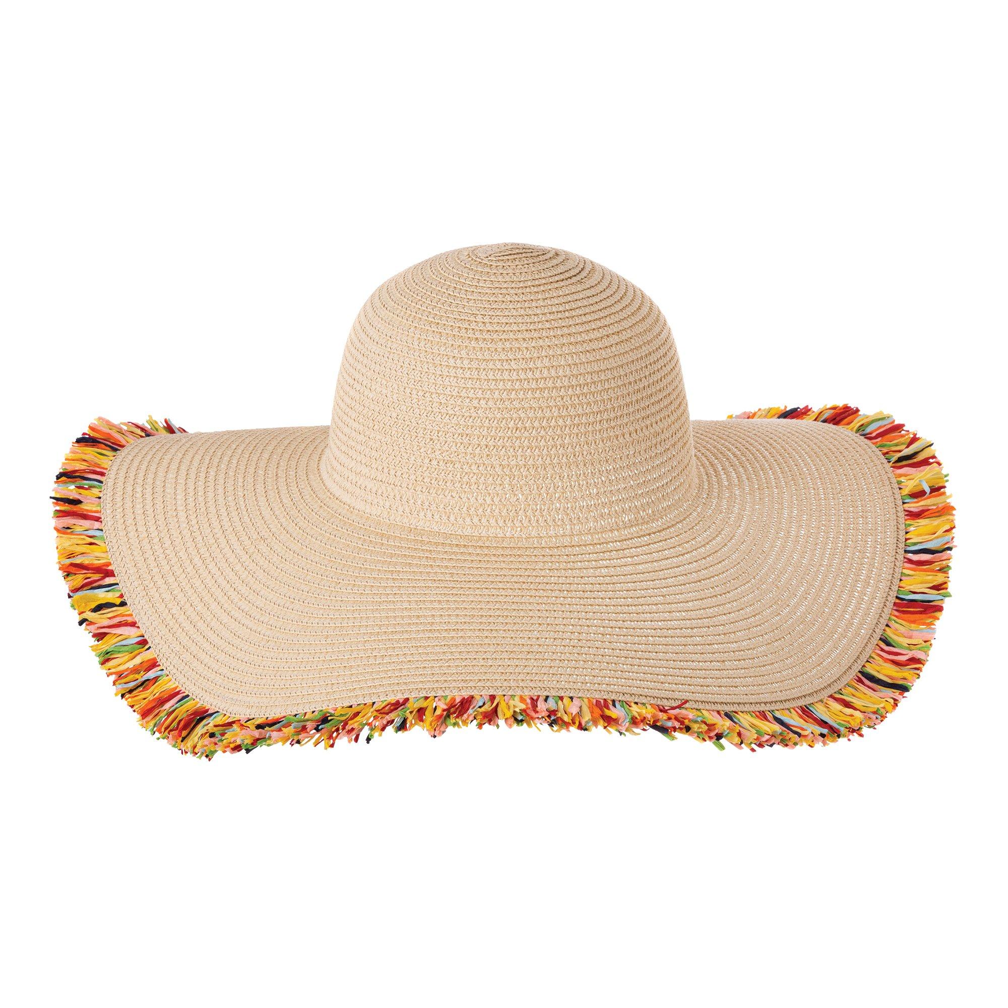 Boho Fringe Wide-Brim Floppy Straw Hat product details: