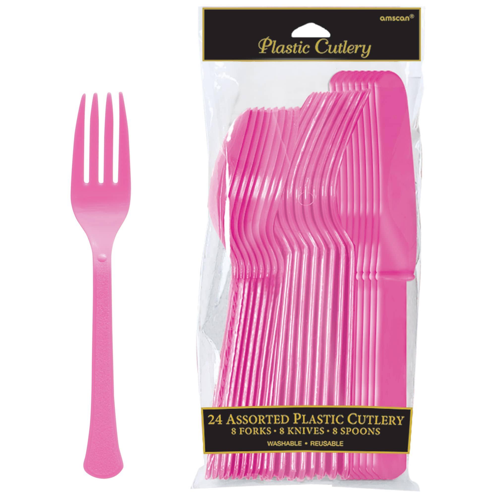 Bright Pink Plastic Cutlery Set 24ct