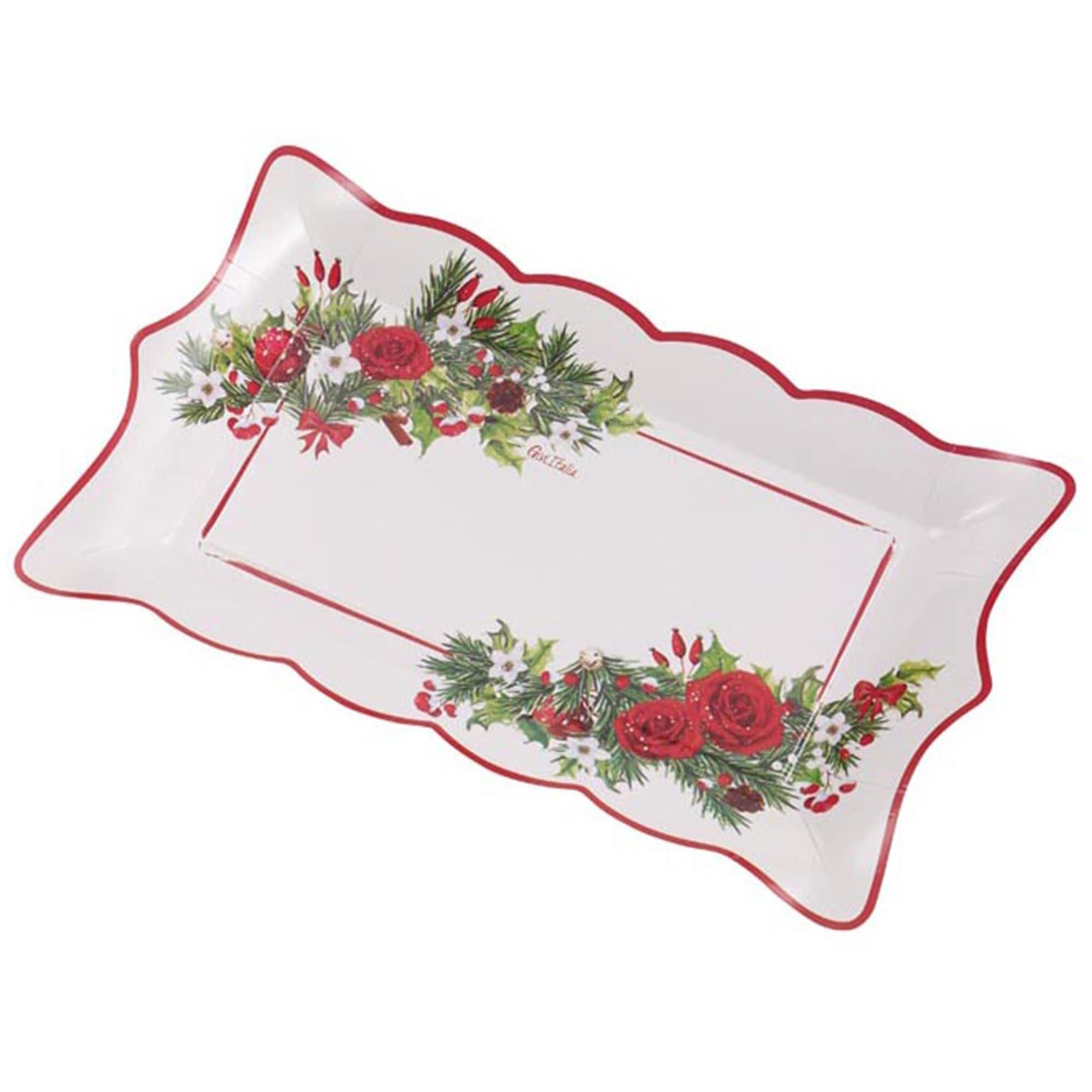 Christmas Floral 12" Shaped Paper Trays, 7ct – Holiday Roses, Holly & Ornaments