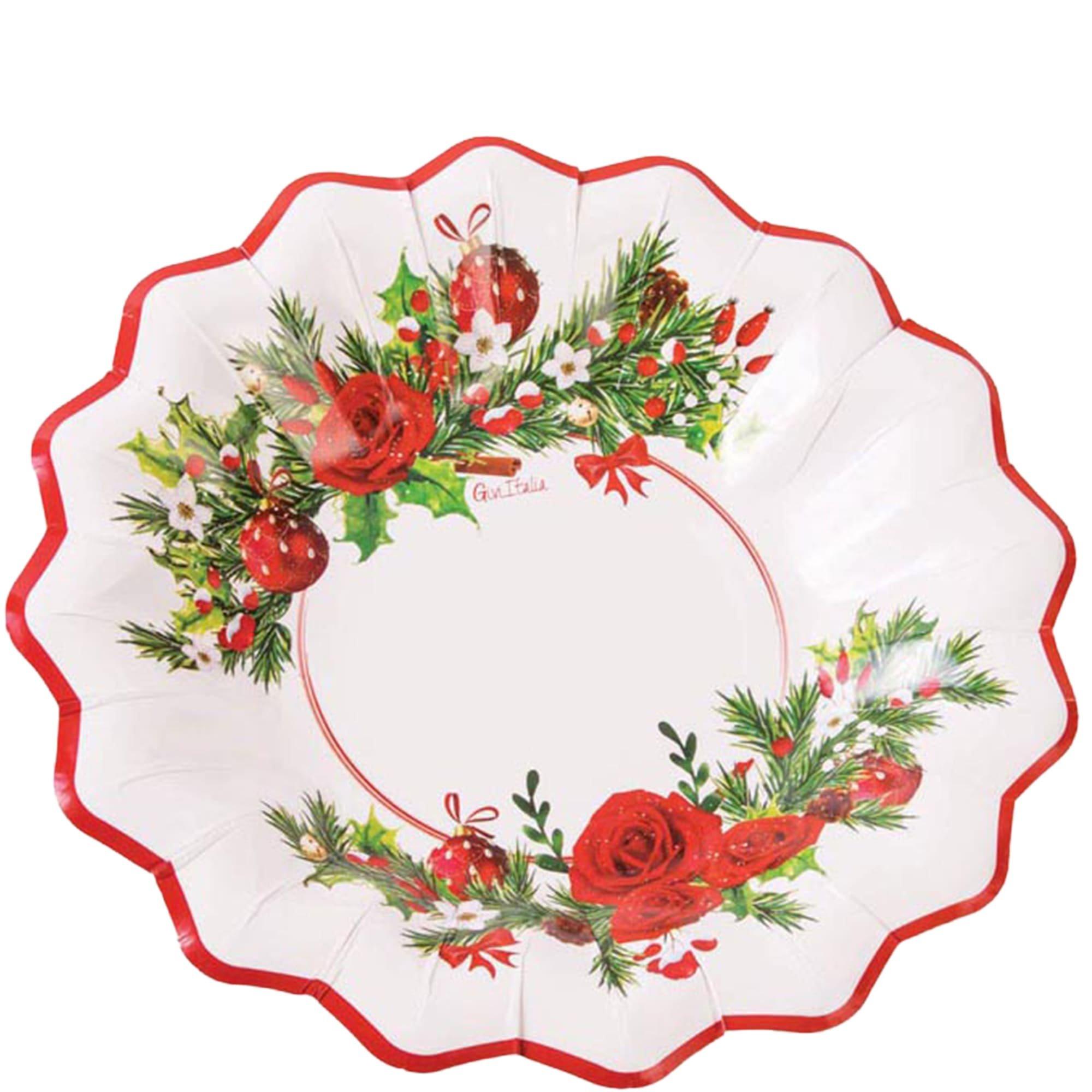 Christmas Floral 9" Shaped Paper Bowls, 8ct – Red Roses, Holly & Ornaments