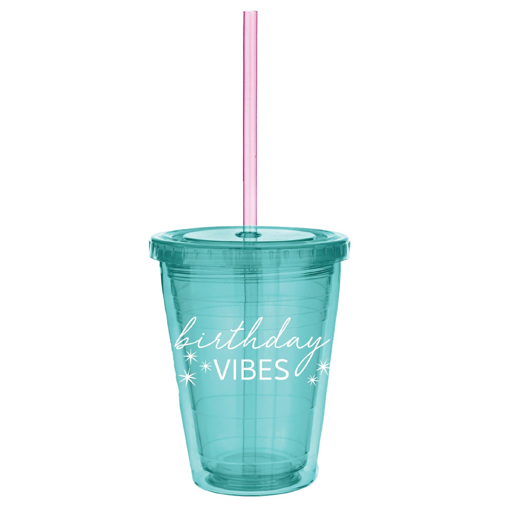 Enjoy drinks with this Digital Dream plastic tumbler, featuring a bright ombre design with a fun pink straw. The Digital Dream theme adds colorful style to your birthday table.