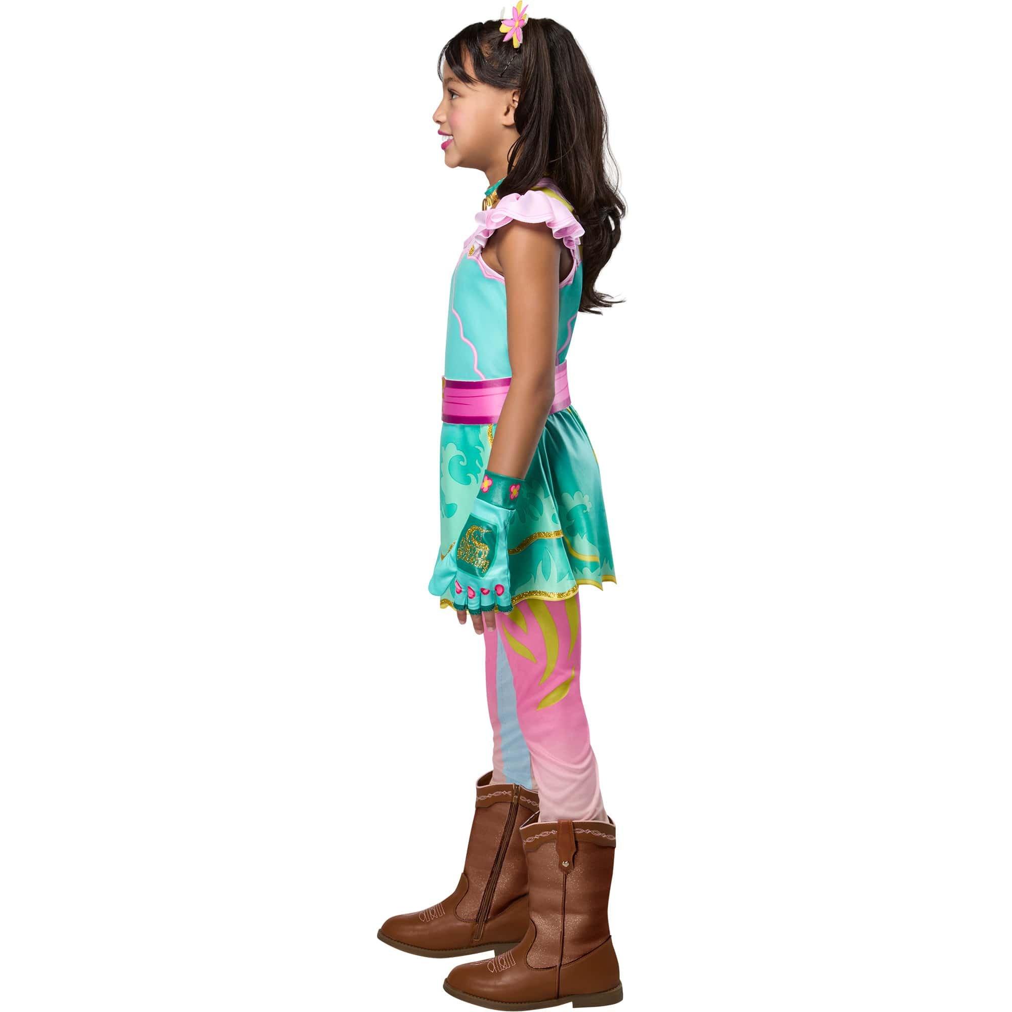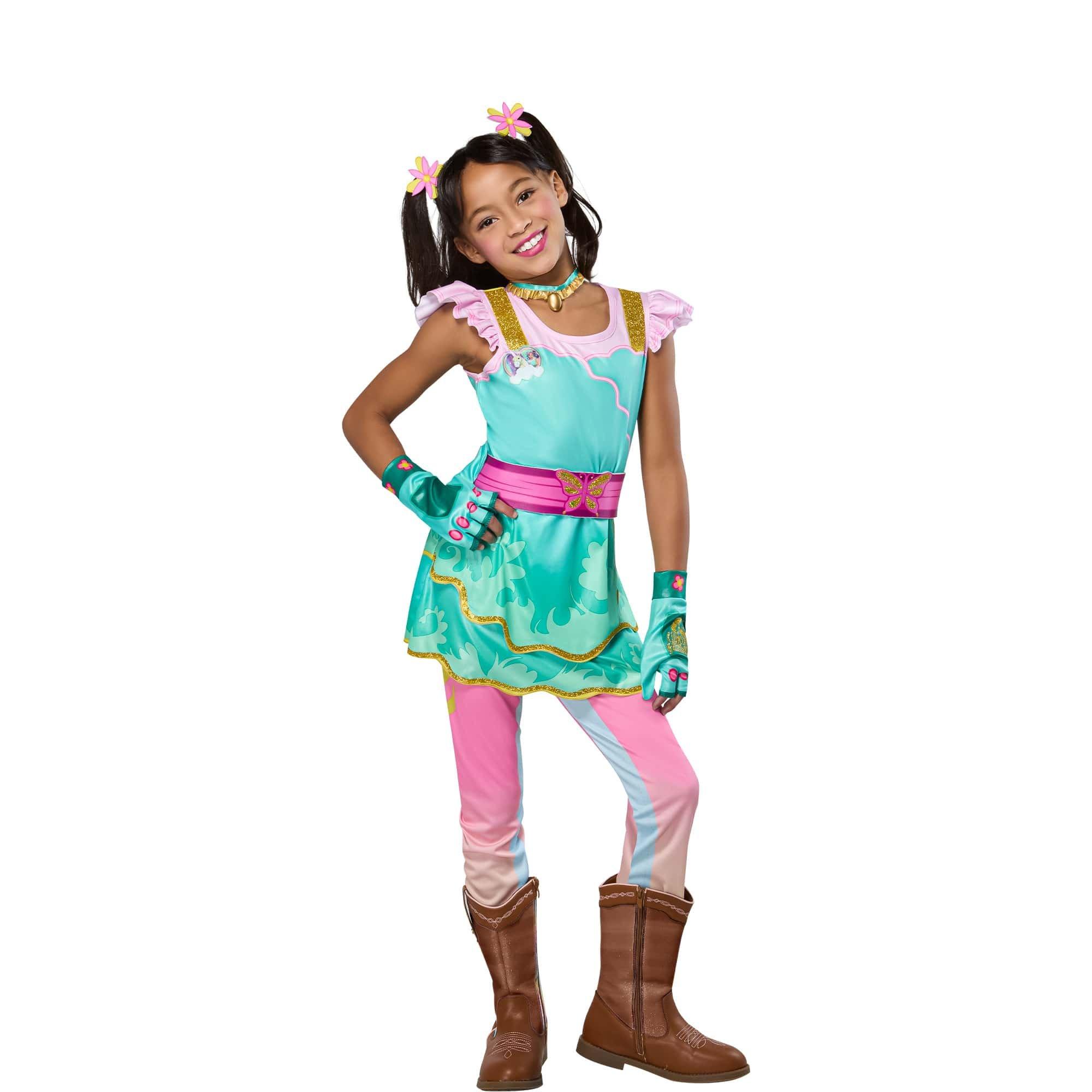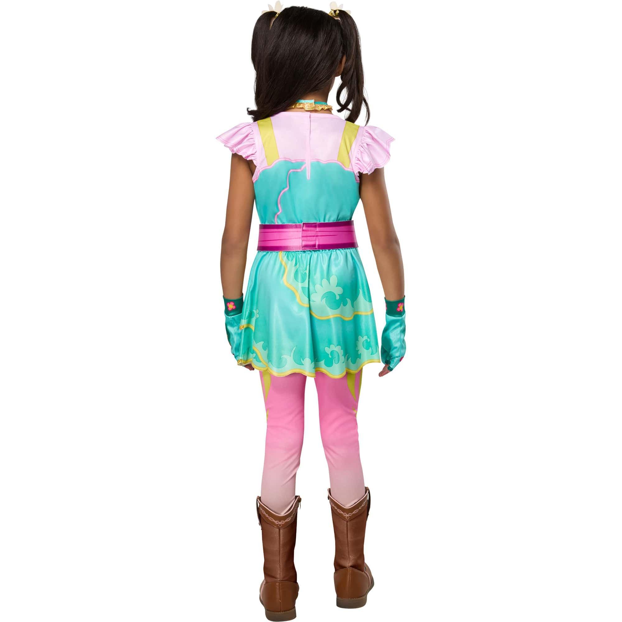 Let your little one dive into the enchanting world of Unicorn Academy with the officially licensed Girls' Unicorn Academy Ava Banji Costume! Perfect for fans of the magical series, this vibrant, eye-catching costume will have your child feeling like a true unicorn student at the academy. Featuring a teal dress, pink belt, pink and blue leggings, teal and pink gloves, teal and gold necklace, and 2 pink and yellow hair clips, creating a charming and magical appearance that any Unicorn Academy fan will adore. Whether it’s for Halloween, themed parties, cosplay events, or everyday magical play, this costume is designed to bring Ava Banji’s unicorn magic to life in the most colorful and fun way.. Complete this look with the Ava Banji wig to really pull off the whole look. Shop now and watch your little one sparkle and shine like never before.