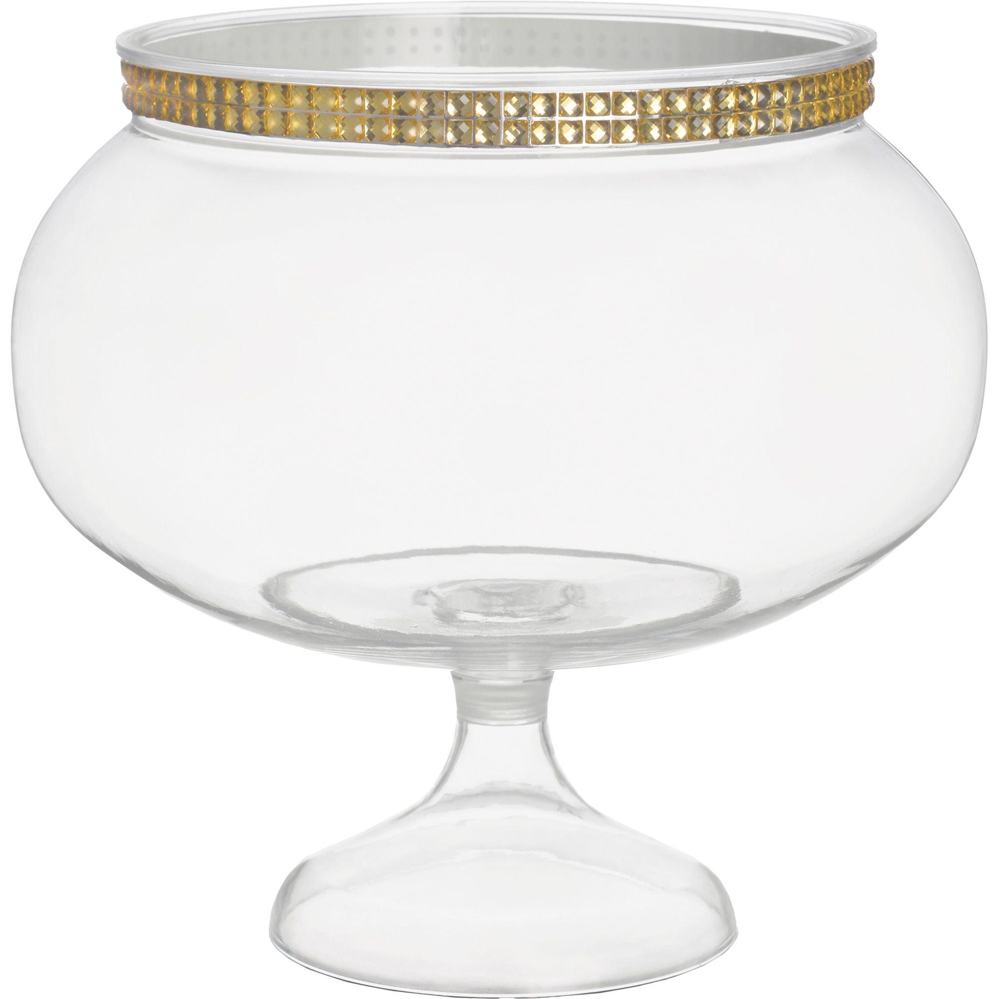 Gold Rhinestone Plastic Pedestal Bowl, 60oz