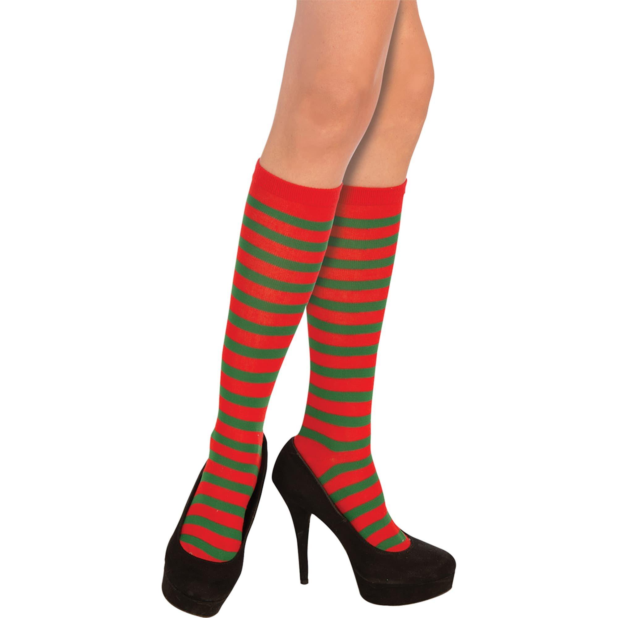 Feel festive in a pair of our Adult Red and Green Striped Socks. All orders come as a set of knee high socks patterned with alternating red and green stripes. They will really make you look and feel ready the holidays. Browse through more accessories and costumes to see what else you can add to your outfit.