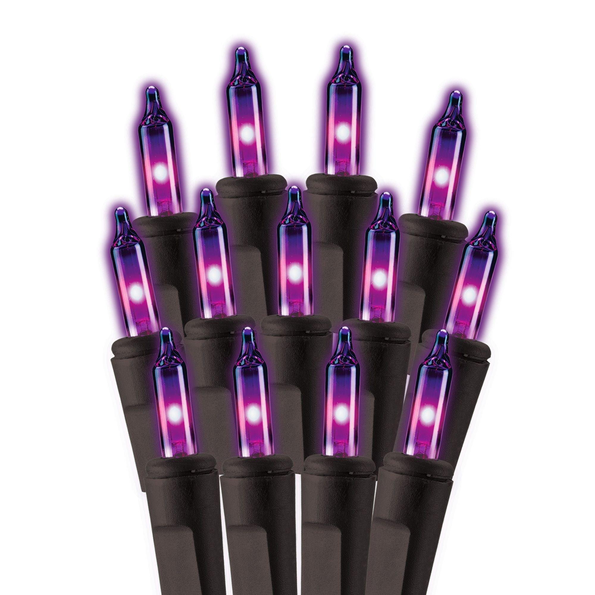 Create a colorful Halloween display or patio decoration with mini purple string lights! The strand has 100 incandescent bulbs, and up to 5 strands can be connected.