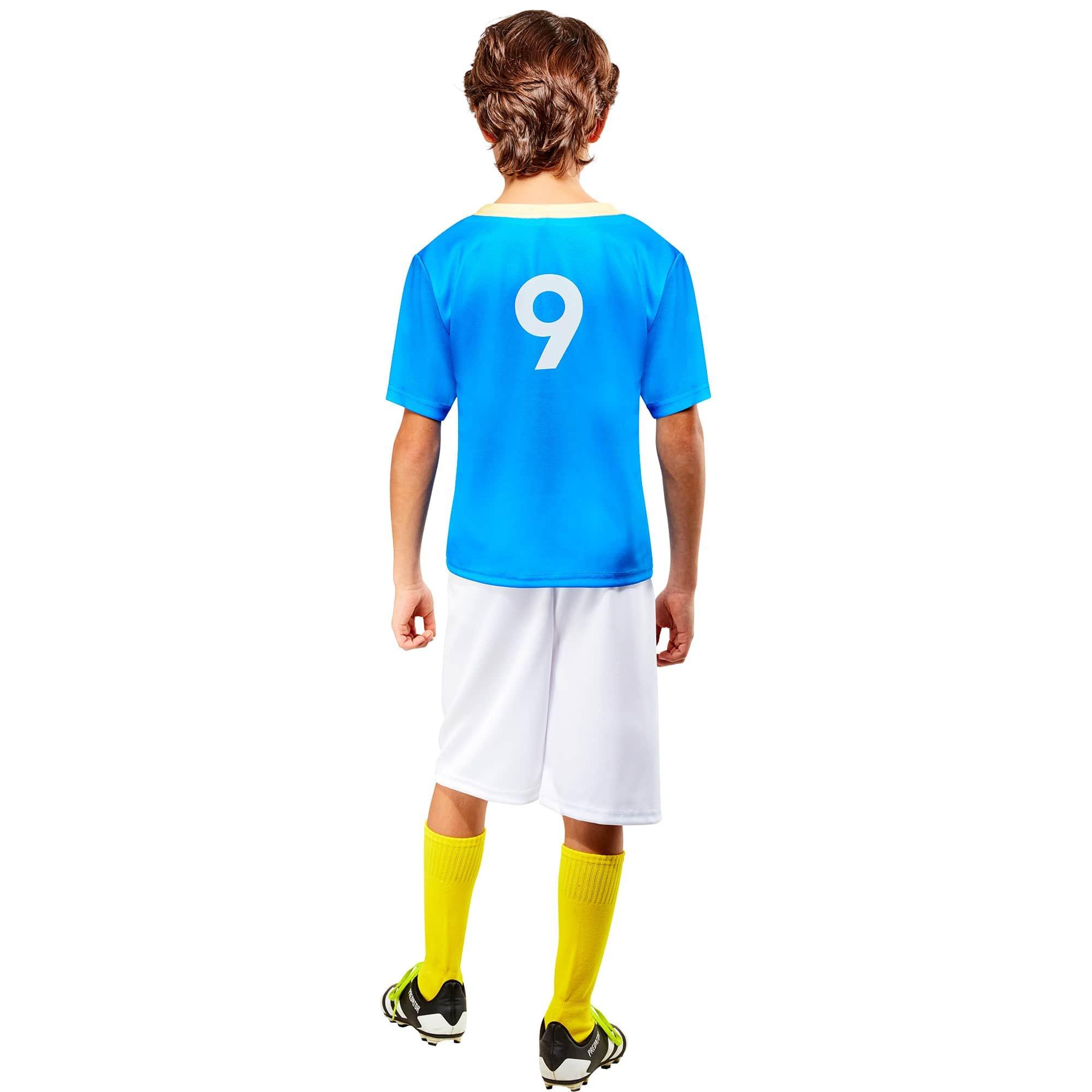 With this fun Ted Lasso costume, you will receive everything your kid needs to steal the ball and score some goals in style. Featuring a blue soccer jersey costume top with a vertical red stripe and an AFC Richmond emblem on the chest, a pair of white shorts with a matching blue emblem, and a pair of bright yellow socks, they'll definitely be owning the soccer field when all decked out in this great English soccer team wear. Just pair with a pair of soccer cleats and pick up a soccer ball to bring the look to the next level and your kid will be all ready to rock.