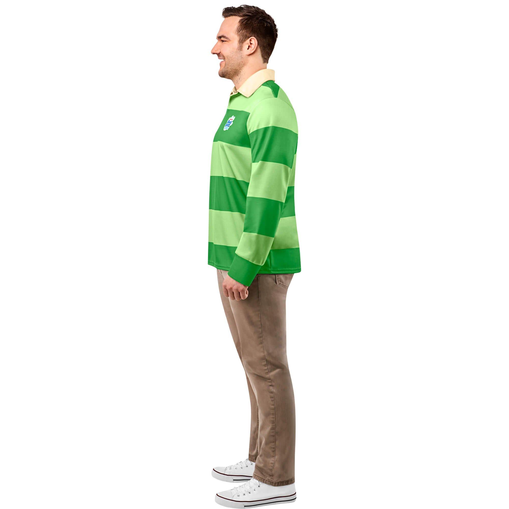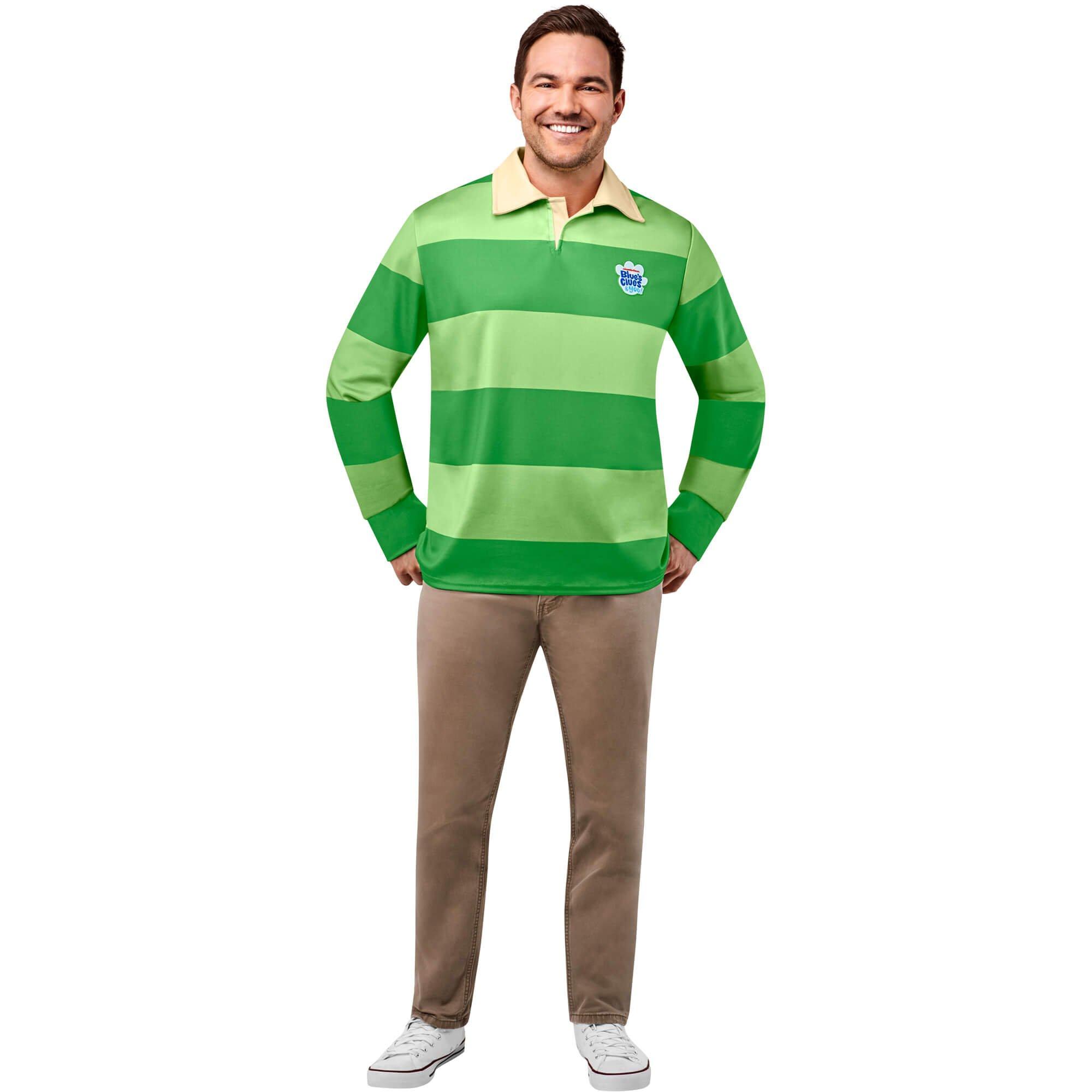 With this Blue's Clues Steve Costume, you will receive just the costume top you need to share some of that pure and wholesome energy we all have grown up with through Blue's Clues. Featuring the classic two-toned striped green shirt that Steve has become famous for, you'll certainly be looking the part while wearing this one. Just throw on a pair of beige khaki pants and a pair of brown shoes and you'll have everybody looking to join your canine mystery solving team this year alongside Blue, Magenta, Salt, Pepper, and the rest of the gang!