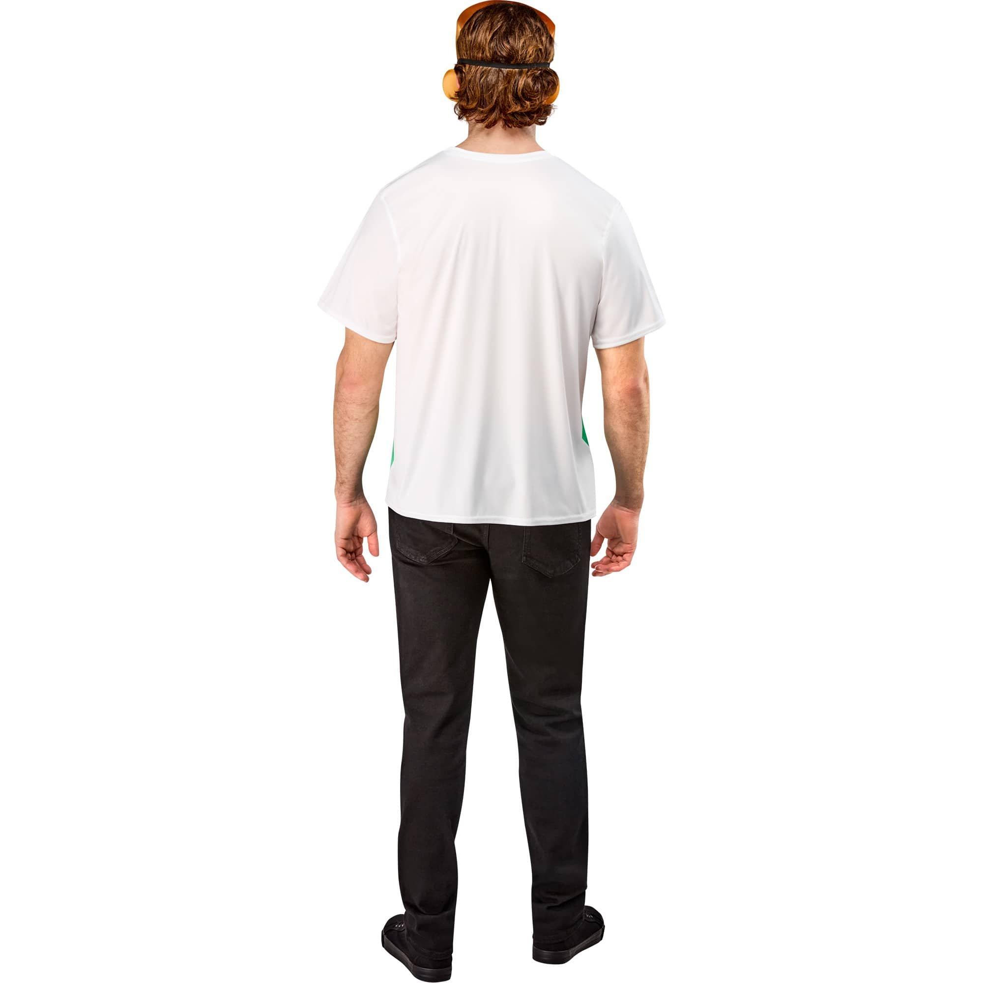 If you're a huge fan of the old classic animated Jetsons TV show, then you're going to love wearing our Men's The Jetsons Ben Cooper George Jetson T-Shirt and Half Mask this year. As George Jetson, you are the hard-working patriach of the family, a loving cosmic husband and father, and a digital index operator at Spacely Space Sprockets. Whether you're cruising through space or putting in your two hours of work for the week, you're going to love this classic Jetsons get-up. With this set, you will receive everything you need to become your favorite animated Jetsons character from the 60's hit show. Featuring a fun George Jetson inspired T shirt along with a matching 1/2 mask, you'll have a truly intergalactic time no matter where you're headed while wearing this one. Team up with Judy, Elroy, and Jane and hit the cosmos together as a little space crew for a night of galactic mischief and fun you'll never forget. Pick up your costume today!
