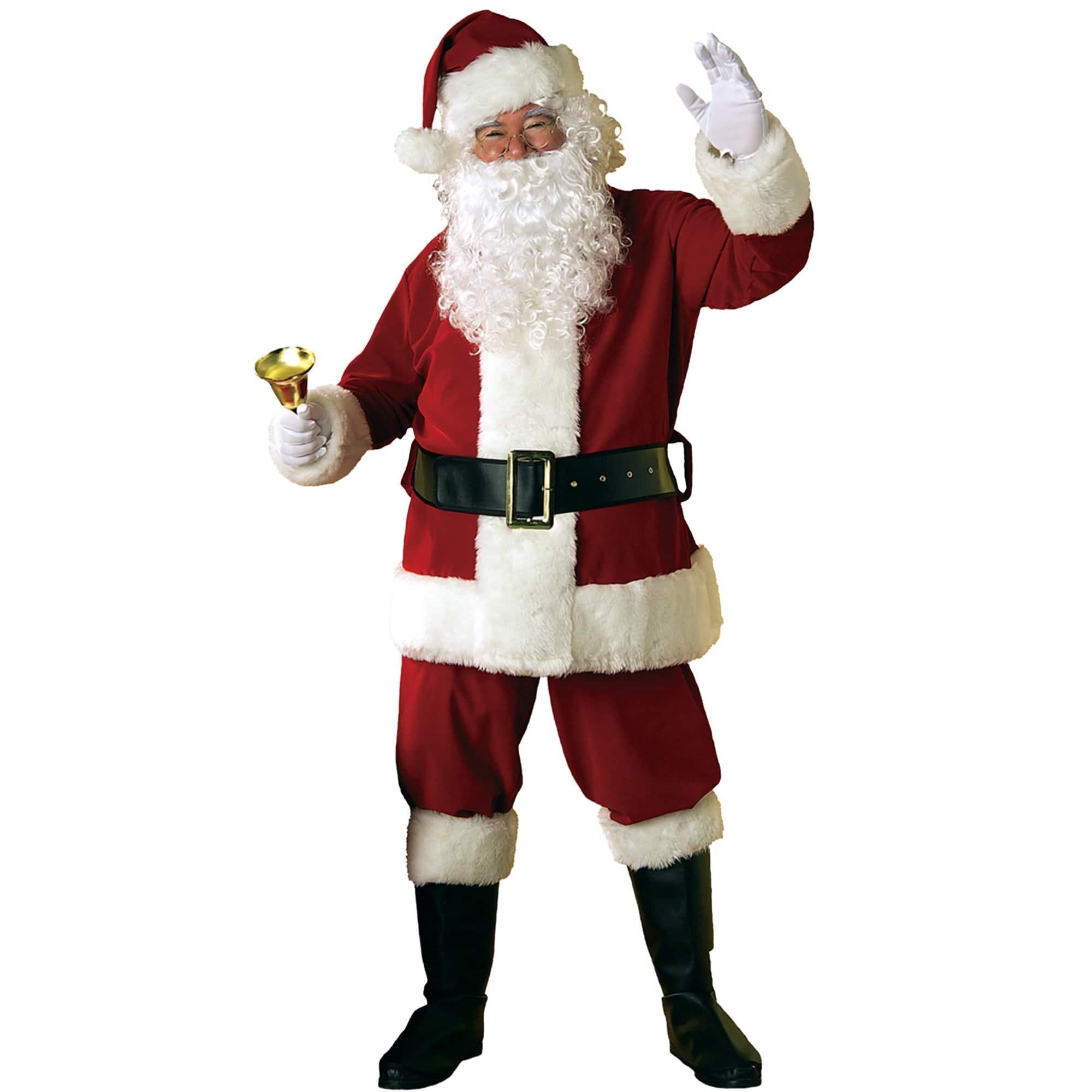 Are you ready for the holidays? If you aren't then why not get ready, by investing in this sensational Adult Deluxe Velvet Santa Suit, which includes the following pieces: Santa's hat, jacket with matching pants, belt, and boot tops. You will surely be all set for Christmas, the winter holidays and even Halloween once you have this Halloween Costume in hand. This Santa Suit is a fabulous bargain especially when considering how frequently you can wear this suit all year. You can wear it at themed parties, like birthdays, promotional events, charity events, Halloween and Christmas parties at home, your neighbor's or even at the office. Why even use it at the local department store and make part-time money having children tell you their Christmas wishes. For additional accessories, we have the following items available: Santa Belly Costume, Authentic Natural Santa Eyebrows, Santa Accessory Kit and the Santa Wig and Beard Set.