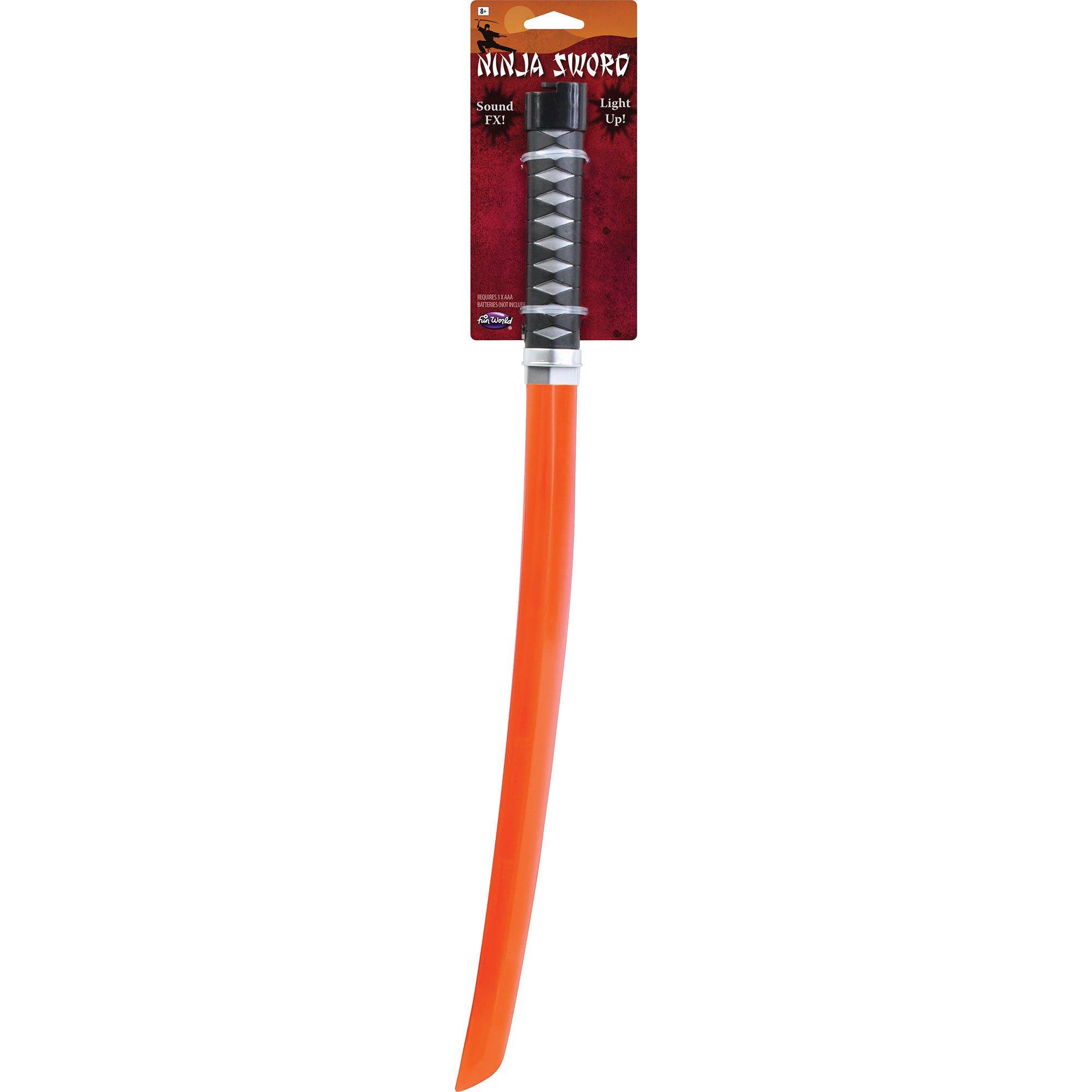 Take your ninja costume to the next level with this Red Light-Up Ninja Sword. The 22-inch sword features a striking red glow, adding an electrifying touch to your look. Ideal for Halloween or cosplay, this sword will light up any event.