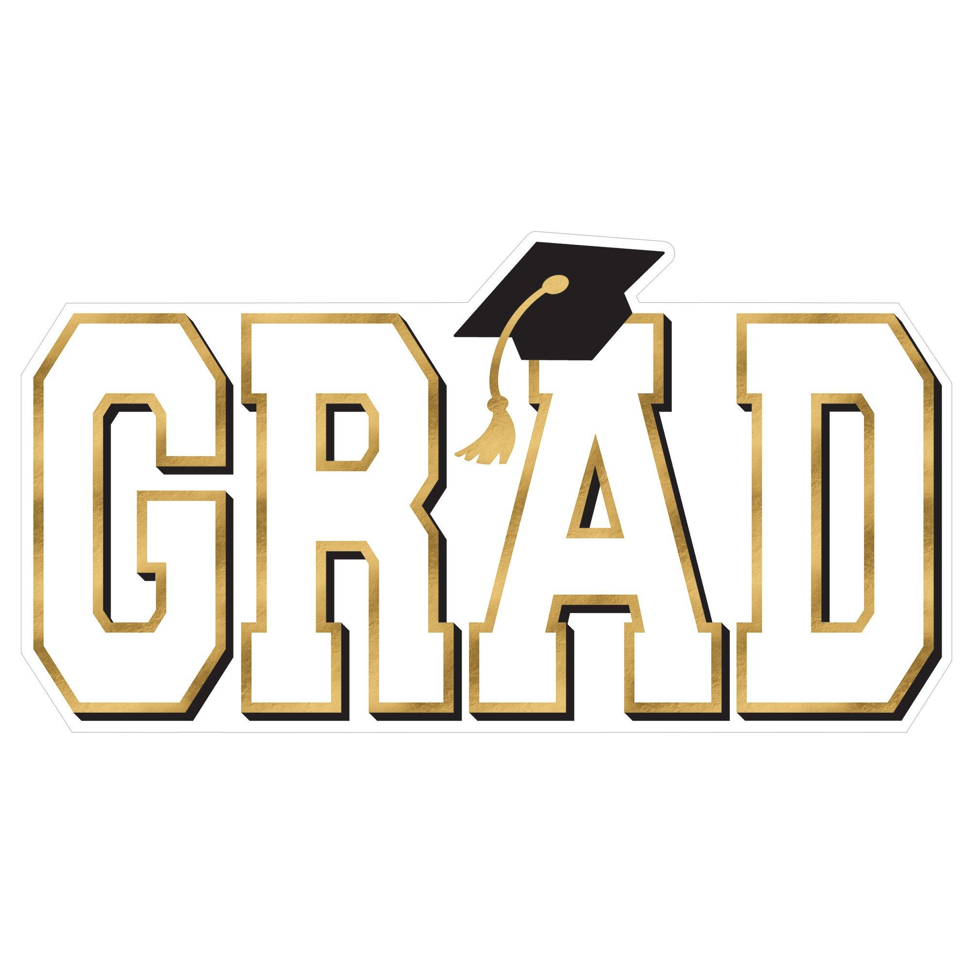 Make a bold statement at your graduation celebration with this White Giant Graduation Cutout! Featuring crisp white block letters that spell out “GRAD,” this oversized cutout adds instant style to walls, entryways, photo booth backdrops, and more. Lightweight and easy to hang, it’s a versatile decoration that brings a modern, clean look to any graduation party setup.